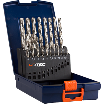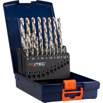 Rotec 19-delig geslepen spiraalboren, type '105', set Ø 1,0 t/m 10,0 (0,5 mm oplopend)