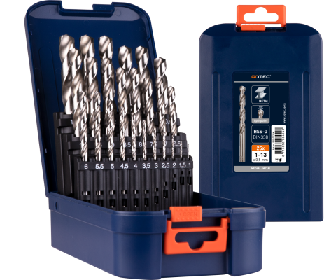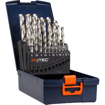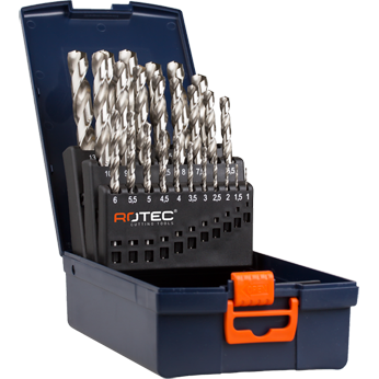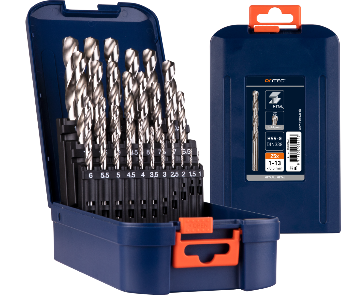 Rotec 25-delig geslepen spiraalboren, type '105' set, Ø 1,0 t/m 13,0 (0,5 mm oplopend)