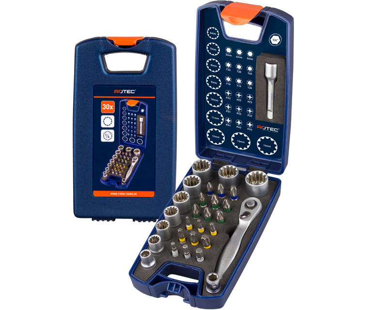 Vraag over Rotec bitset, OPTI, 30-delig, PH, PZ, Torx, inbus, doppen + verlengstuk, adapter en ratelsleutel