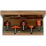 - Deze vijf sets frezen van zeer hoge kwaliteit voldoen aan de vereisten van elke producent van panelen en kastdeuren.