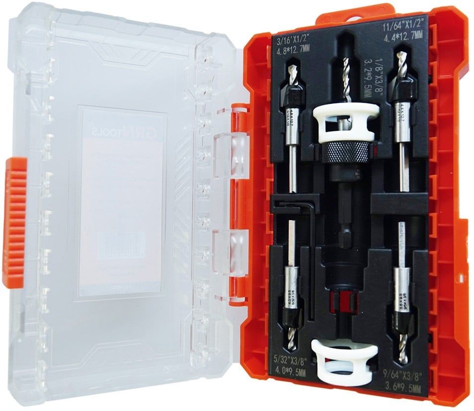 Professionele verzinkborenset voor houttoepassingen, bestaande uit 5 boren met geïntegreerde verzinkers en diepte-instelling. De set bevat: