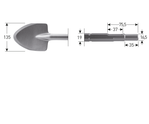 Vraag over Rotec type "215" schopbeitel 135 x 400 mm, 6-kant 19 mm, Ø 16,5 x 35