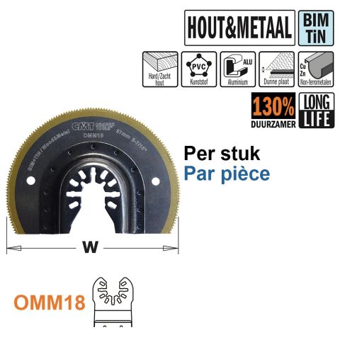 CMT 87 mm. ronde BIM multitoolzaagbladen voor hout en metaal, lange standtijd. (hard/zacht hout, kunststof, aluminium, dunne plaat, non-ferro metalen)