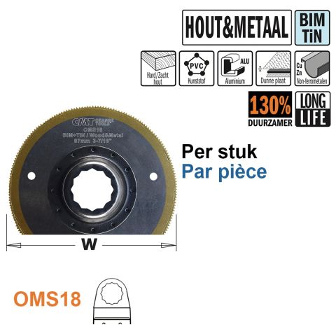 CMT ronde Bi-metaal multitoolzaagbladen voor hout en metaal, Supercut, lange standtijd, 87mm.