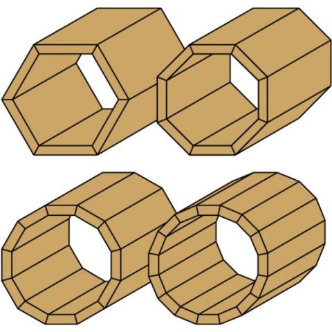 De afgekante hoek lijkt een zeer simpel detail. De gebruiker weet echter goed dat schijn kan bedriegen. Dit is zeker waar als het gaat om een veelhoek die perfecte sneden moet hebben. De CMT- afkantfrezen,allemaal bestaande uit mikrokorrel hardmetaal, kunnen het afkant- werk heel wat vergemakkelijken. Door eenvoudig de hoogte van de frees af te stellen,bekomt men een oneindig aantal afkant-variaties. Dit afboorden is ideaal voor balken, kolommen en grote hout-stukken.