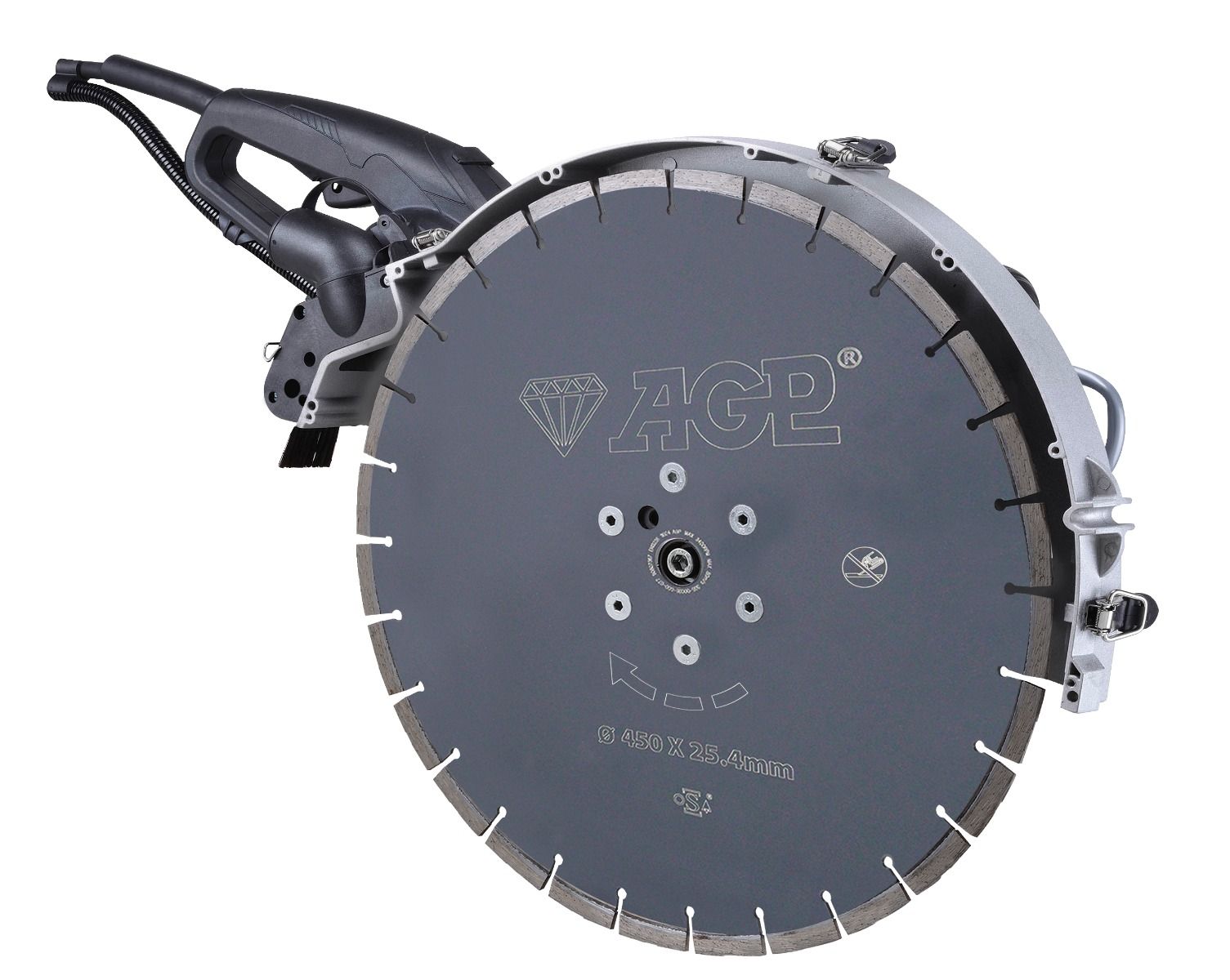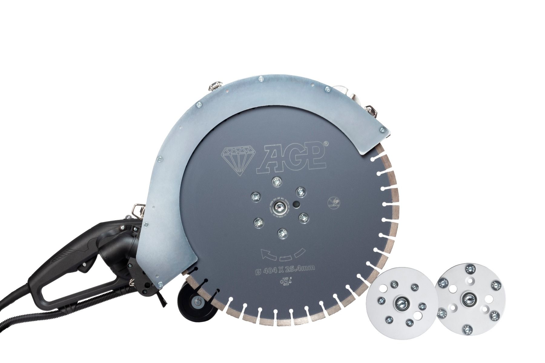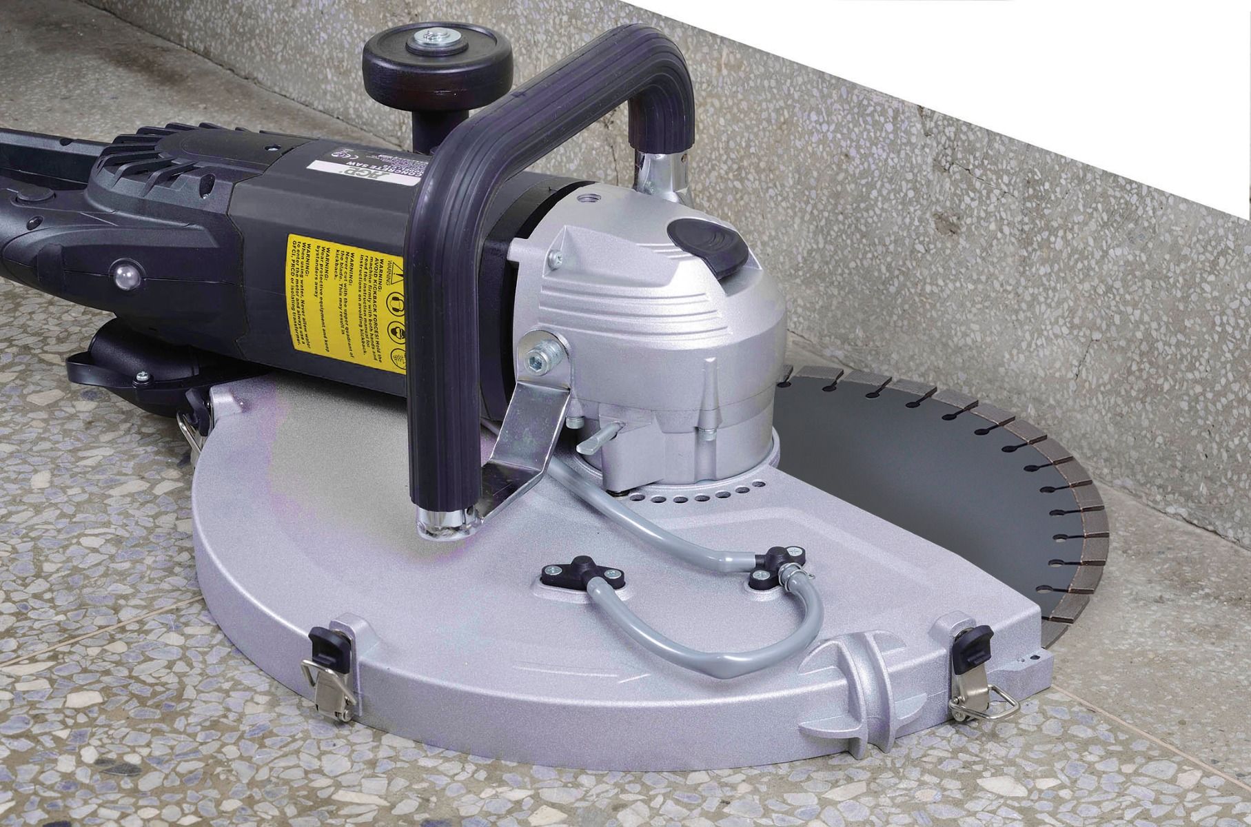 405 mm handzame natte of droge diamantzaag met 3200 W motor voor een zaagdiepte tot 150 mm. Ideaal voor het zagen binnen en buiten. Afneembare bladbeschermkap met optionele flens voor vlaksnijden voor eenvoudige ombouw naar functie voor vlakzagen.