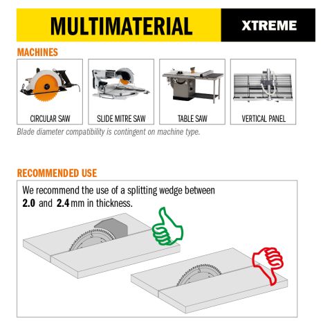 ● It is not recommended to use the saw blades for longitudinal cuts in soft wood and material thicknesses of more than 40mm.