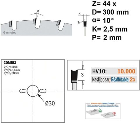 300xø30x2,5 Z44*DP diamant All-round zaagblad