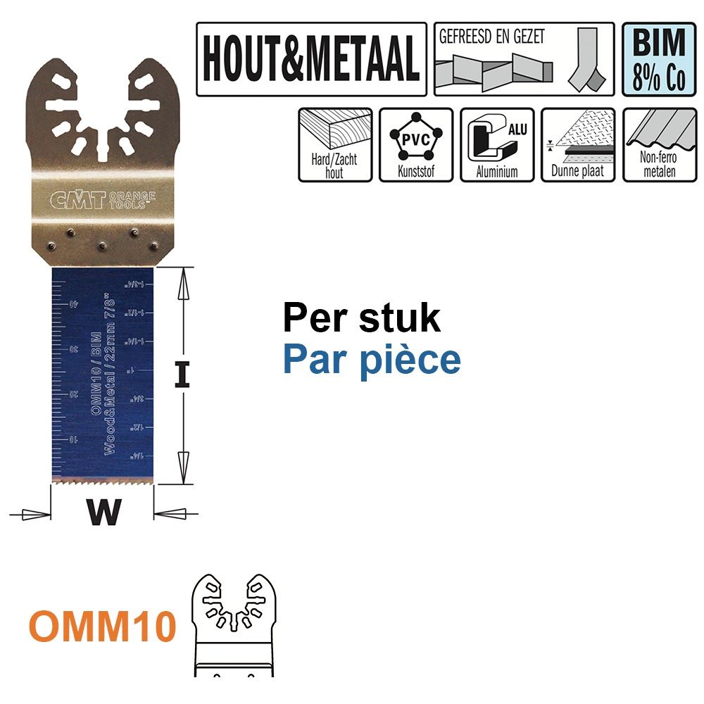 CMT 22 mm. BIM multitoolzaagbladen voor hout en metaal. (hard/zacht hout, kunststof, aluminium, dunne plaat, non-ferro metalen)