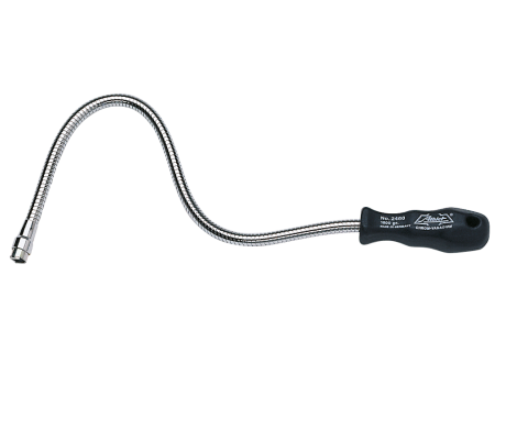 Magnetische pick-up tool met flexibele as, blad met ronde magneet, verchroomd. Met ergonomische 1C-handgreep.