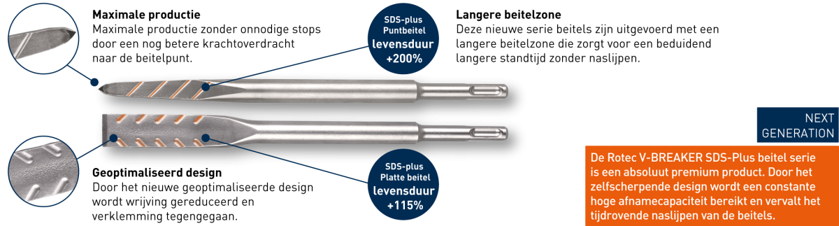 V-Breaker beitels (SDS-plus & SDS-max) +150% langere standtijd