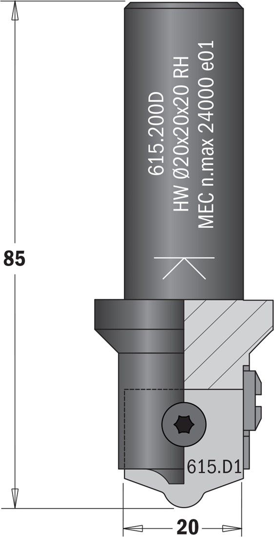 Bovenfrees voor profielmessen 615.D S=Ø20 (zonder messen)