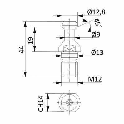 CDM12 Aantrekbout voor ISO-houders ISO30, tbv Alberti, HSD Alberti, Masterwood, Elettromandrini, Colombo