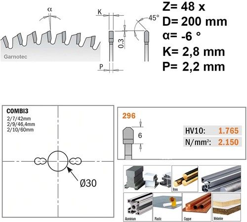 200x30x2,8 Z48*HW (hardmetalen tanden)* Aluminium, Composiet … *