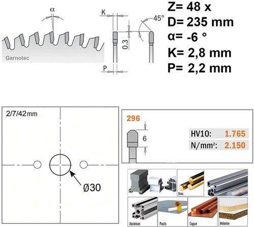 235x30x2,8 Z48*HW (hardmetalen tanden)* Aluminium, Composiet … *
