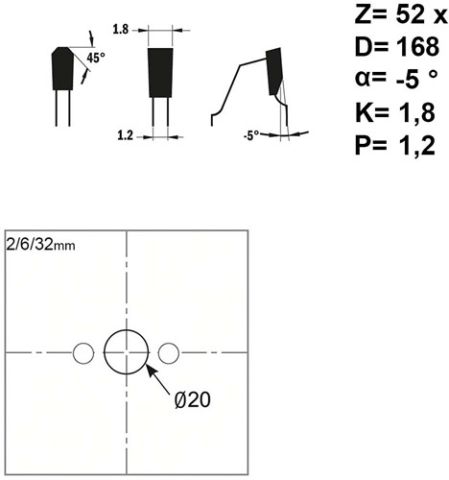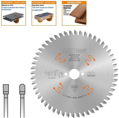 168x20x1,8 Z52*HW (hardmetalen tanden)*Non-ferro metalen, melamine*