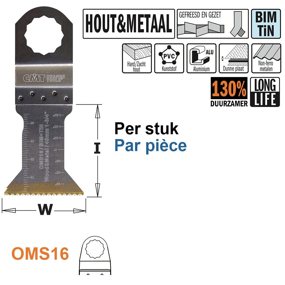 CMT bi-metaal multitool voor in hout en metaal, SuperCut, lange standtijd, 45 mm.