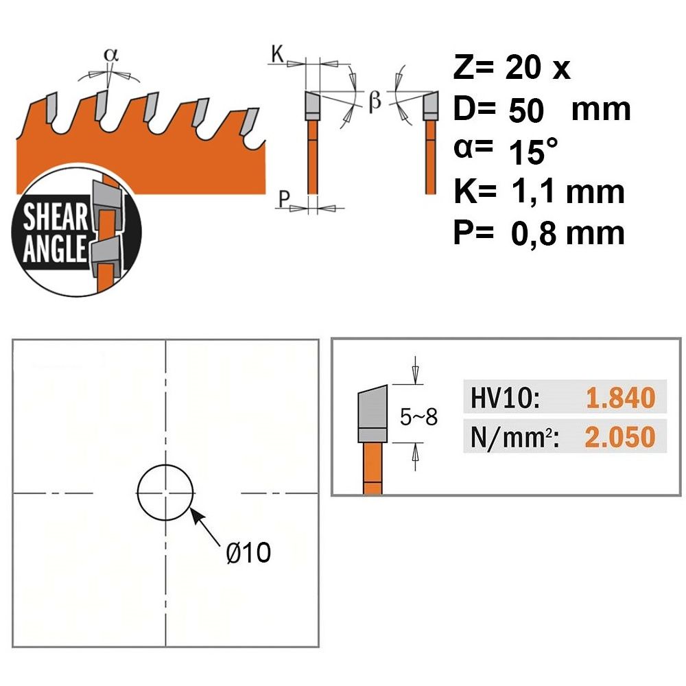 Vraag over CMT cirkelzaag Ø 50 x 1,1 ø10 z=20 wisseltand
