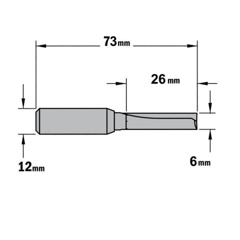 CMT groeffrees Ø6x26/73mm. Z=3 S=Ø12 DLCS coating, voor nesting