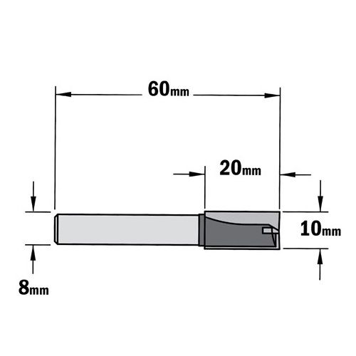 CMT groeffrees Ø10x20/60mm. Z=2+1 S=8
