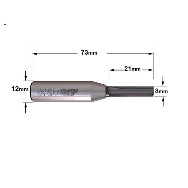 CMT groeffrees Ø8x21/73mm. Z=3 S=Ø12 DLCS coating, voor nesting