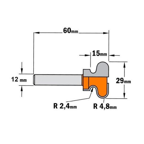 CMT handgreepfrees Ø 29 x 60/20 R= 4,8/2,3 Z=2 S=Ø12