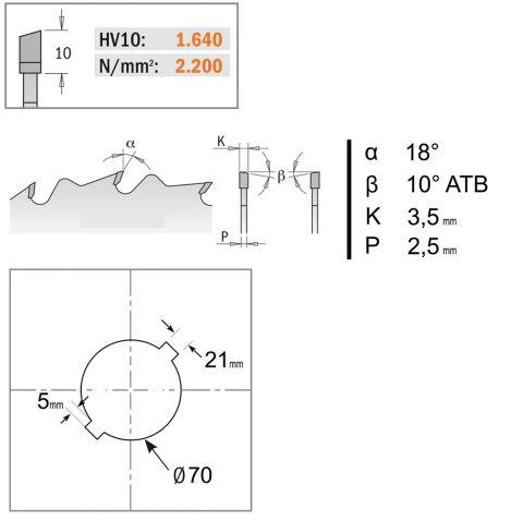 HW Schulpzaag, D=350, Ø70, K=3.5, P=2.5, Z36.