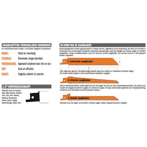 Toepassing: Gasbeton, bouwsteen, vezelcement (10-250 mm), glasvezelversterkt kunststof (<100 mm.) Krachtig, grof zagen.