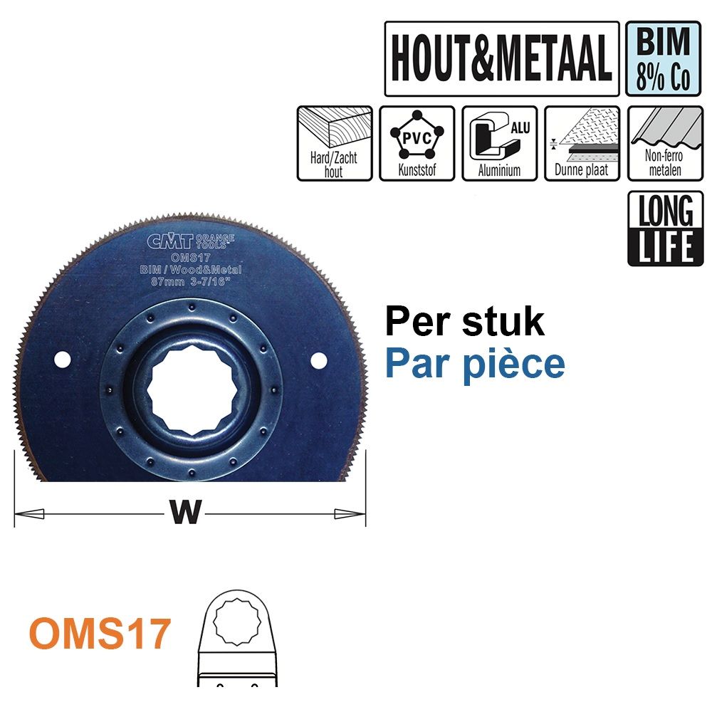 CMT ronde bi-metaal multitool voor hout en metaal, SuperCut, lange standtijd, 87 mm.