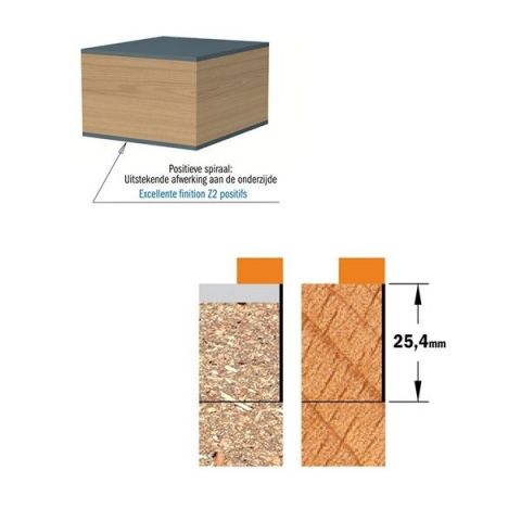 Dit vermindert de snijdruk, zorgt voor een gladder freesresultaat en voorkomt splinteren van het materiaal.