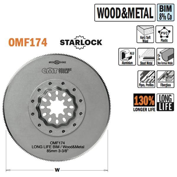 CMT 85mm Starlock ronde multitoolzaagbladen voor metaal en hout, lange standtijd (hard/zacht hout, kunststof, aluminium, dunne plaat, non-ferrometalen, pijp profielen, glasvezel/epoxy)