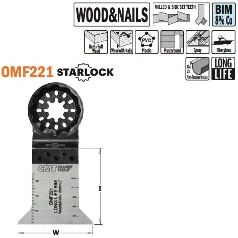 Vraag over CMT 50mm Starlock BIM multitoolzaagblad voor hout met spijkers (hard/zacht hout, hout met spijkers, kunststof, gipsplaat, glasvezel/epoxy, non-ferrometalen)