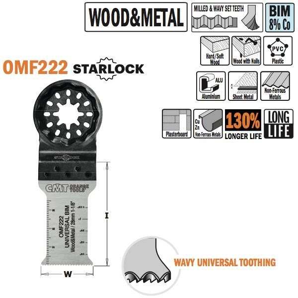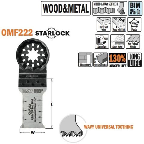 CMT 28mm Starlock BIM multitoolzaagblad voor hout en metaal (hard/zacht hout, hout met spijkers, kunsstof, aluminium, dunne plaat, non-ferro metalen, gipsplaat)