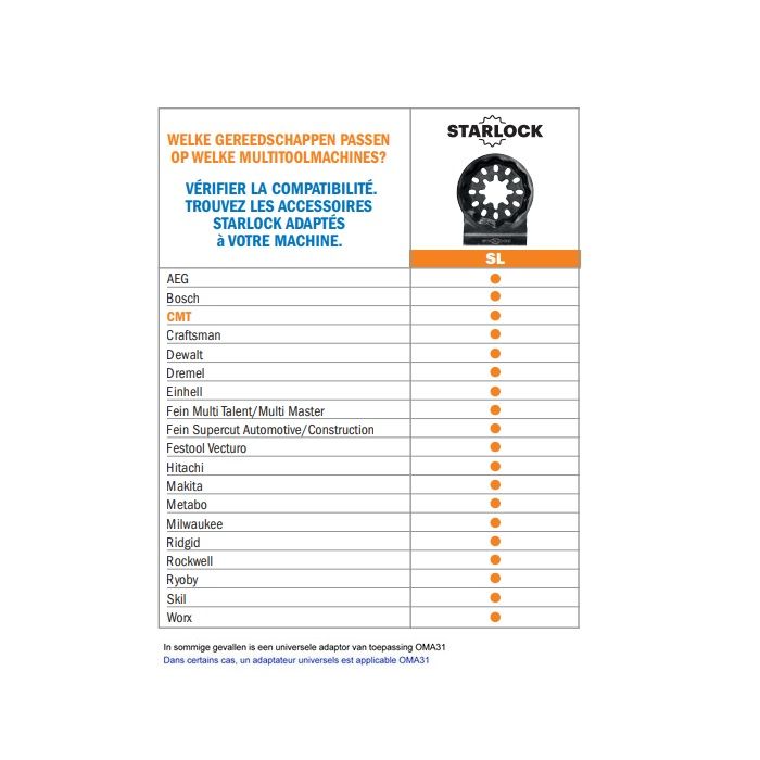 Vraag over CMT 35mm Starlock HCS multitoolzaagblad met Japanse vertanding voor hout (hard/zacht hout, blokplaat, OSB-plaat, kunststof, gipsplaat)