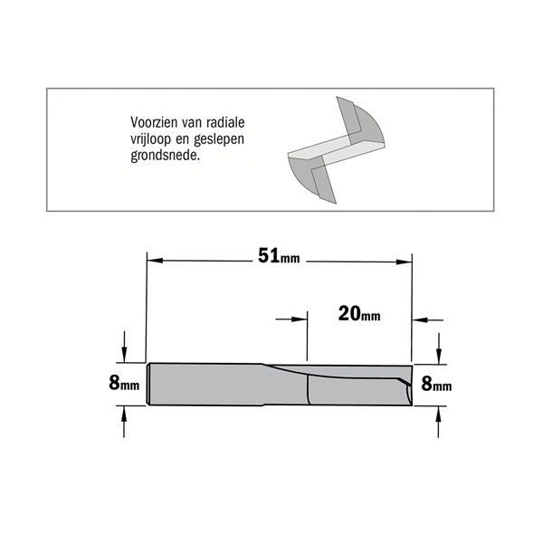 CMT groeffrees Ø8x20/51mm. Z=2 S=Ø8