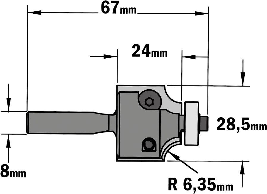 CMT wisselmes afrondfrees Ø29mm. R=6.35 S=Ø8
