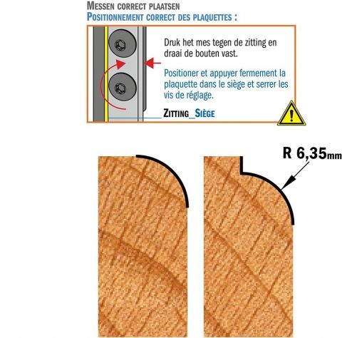 Afrondwisselmesfrezen voorzien van 2 wisselmessen, elk mes is voorzien van 2 snijkanten (Z=2). De messen van 661.xxx.41 hebben elk 4 snijkanten (Z=4). Te gebruiken voor het afronden van massief hout en alle plaatmaterialen en kunststof-producten. Voor gebruik in handbovenfreesmachines en – zonder lager – ook te gebruiken in CNC-gestuurde bovenfreesmachines.
