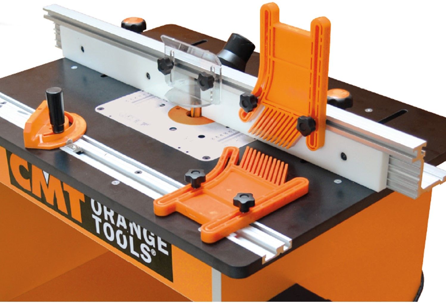 Het 19mm dikke tafelblad is gemaakt van een extreem sterk, stabiel en duurzaam materiaal, opgebouwd uit honderden gelamineerde lagen fenol. De tafel heeft qua sterkte de kenmerken van staal en laat zich eenvoudig bewerken (gaten boren, draad tappen). Kromtrekken van de tafel is absoluut onmogelijk. Dit in tegenstelling tot de met melamine beplakte tafels van de concurrentie. Het CMT-tafelblad wordt geleverd met 3 aluminium tafelringen en een aluminium geleidebaan voor een verstekgeleider. Praktisch alle merken en types bovenfreesmachines zijn eenvoudig met behulp van een meegeleverd hulpstuk te monteren. Om optimaal te profiteren van de mogelijkheden van deze tafel adviseert CMT gebruik te maken van machines met een motorvermogen van minimaal 2.400W. (zoals bijvoorbeeld de CMT7E).