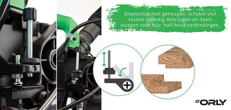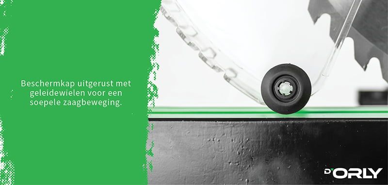 - Een lijnlaser onderaan de trekarm geeft van tevoren precies aan waar de zaagsnede zal komen.