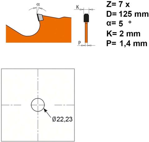 Diamand DP zaagblad, D=125, Ø22,23 K=2,2, Z7