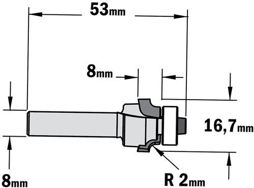 D=16,7 x 12.7mm* R=2 L=50* S=8 Z2*