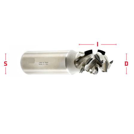 Diamantfrees voor boren en frezen met axialiteit 45°, ideaal voor panelen gemaakt op spaanplaat gecoat met papier.