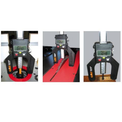 - Rechtstaand meettoestel voor het instellen van de snijdiepte op de bovenfreesmachine.