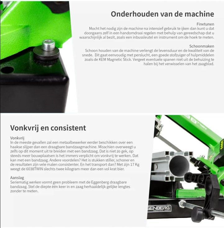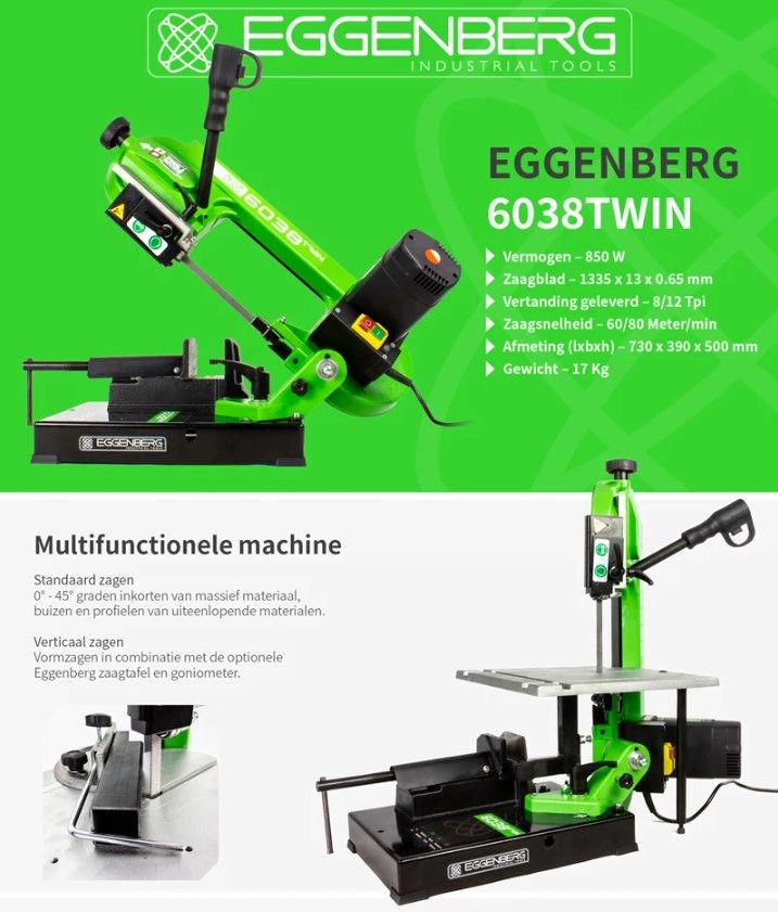 Eggenberg 6038TWIN draagbare bandzaagmachine 105mm, 850W