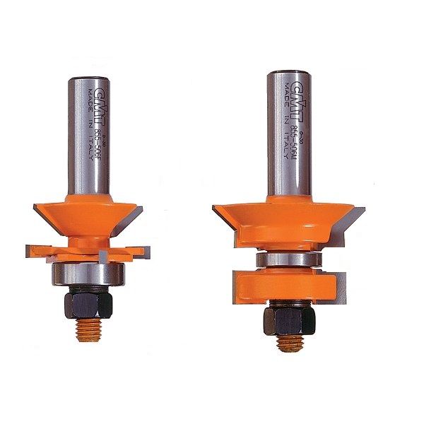 Deze set maakt mooie tand- en groefverbindingen met een aantrekkelijk 45° V-patroon. Het verschil tussen de CMT-set en anderen is dat onze beide frezen lagers hebben om het werkstuk accuraat te helpen geleiden. Dit is ook een tweeling-set die het uitwisselen van snijkoppen vergemakkelijkt, of ? als men wil ? het installeren op twee afzonderlijke tafels toelaat. Beschikbaar met 12mm schachten.