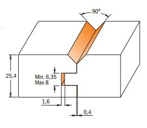 Frezenset voor tand- en groefverbinding met v-groef