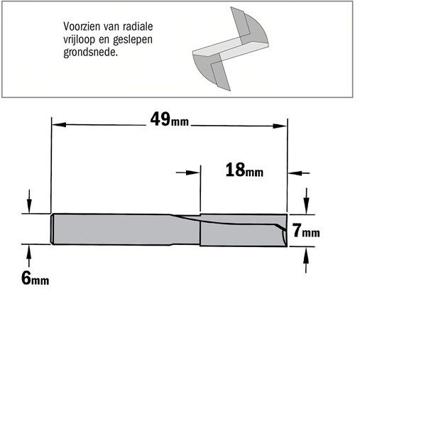 CMT groeffrees Ø7x18/49mm. Z=2 S=Ø6