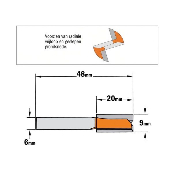 CMT groeffrees Ø9x20/48mm. Z=2 S=Ø6