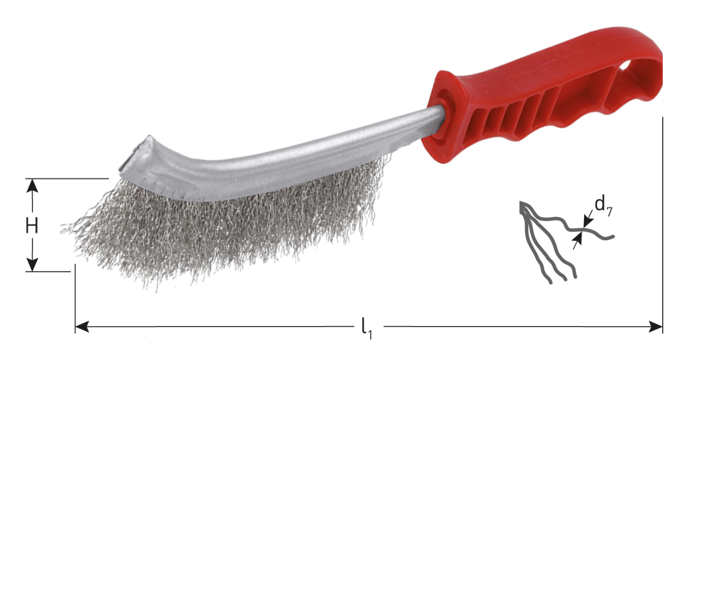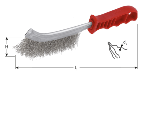 Kunststof handgreep met 1 rijige borstel voorzien van gehard, kwaliteits staaldraad.