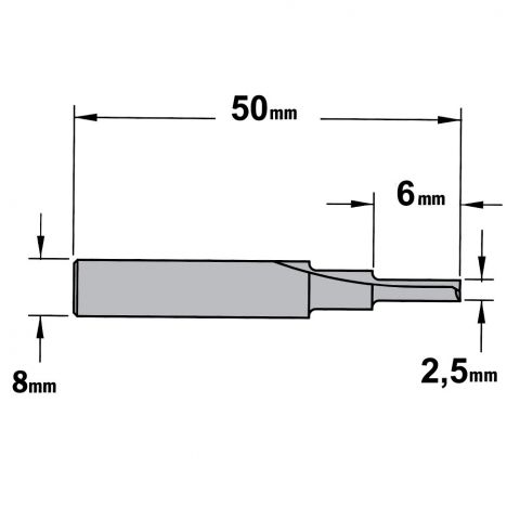 CMT groeffrees Ø2,5x6/50mm. Z=2, S=Ø8